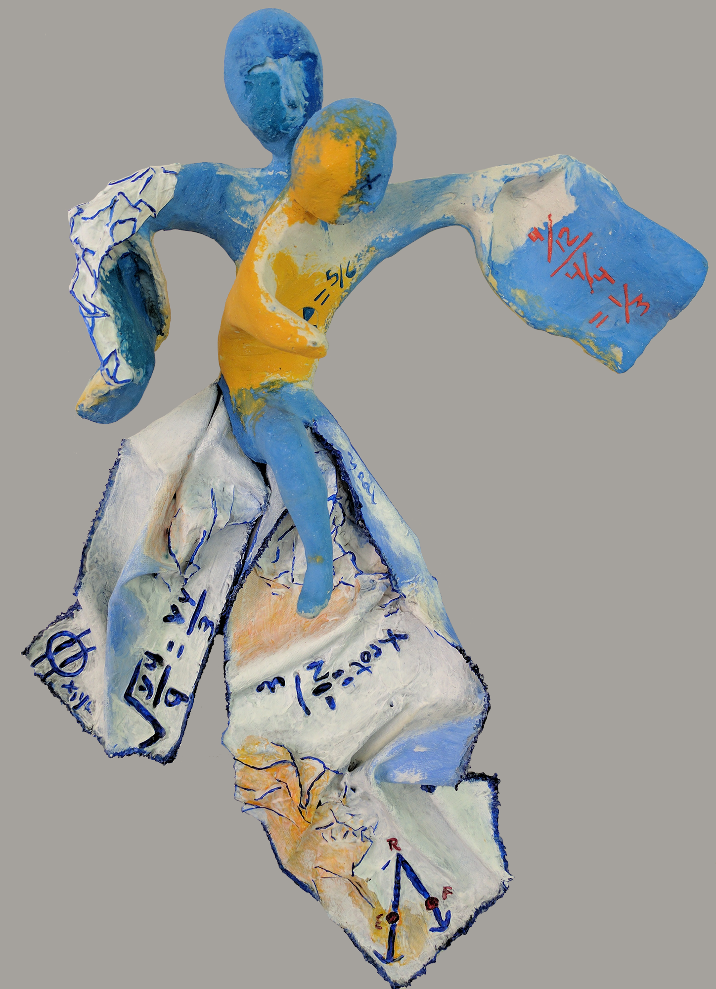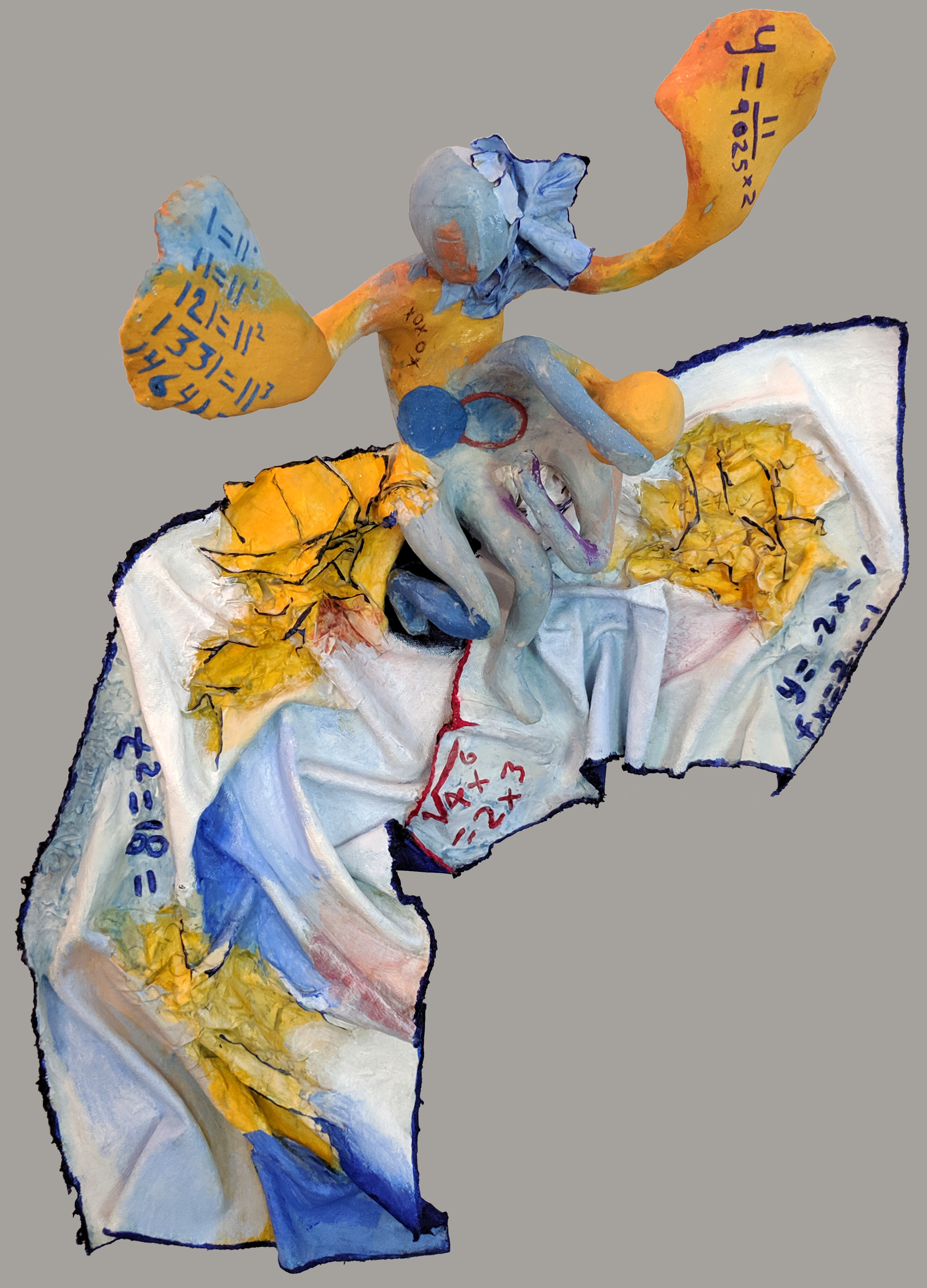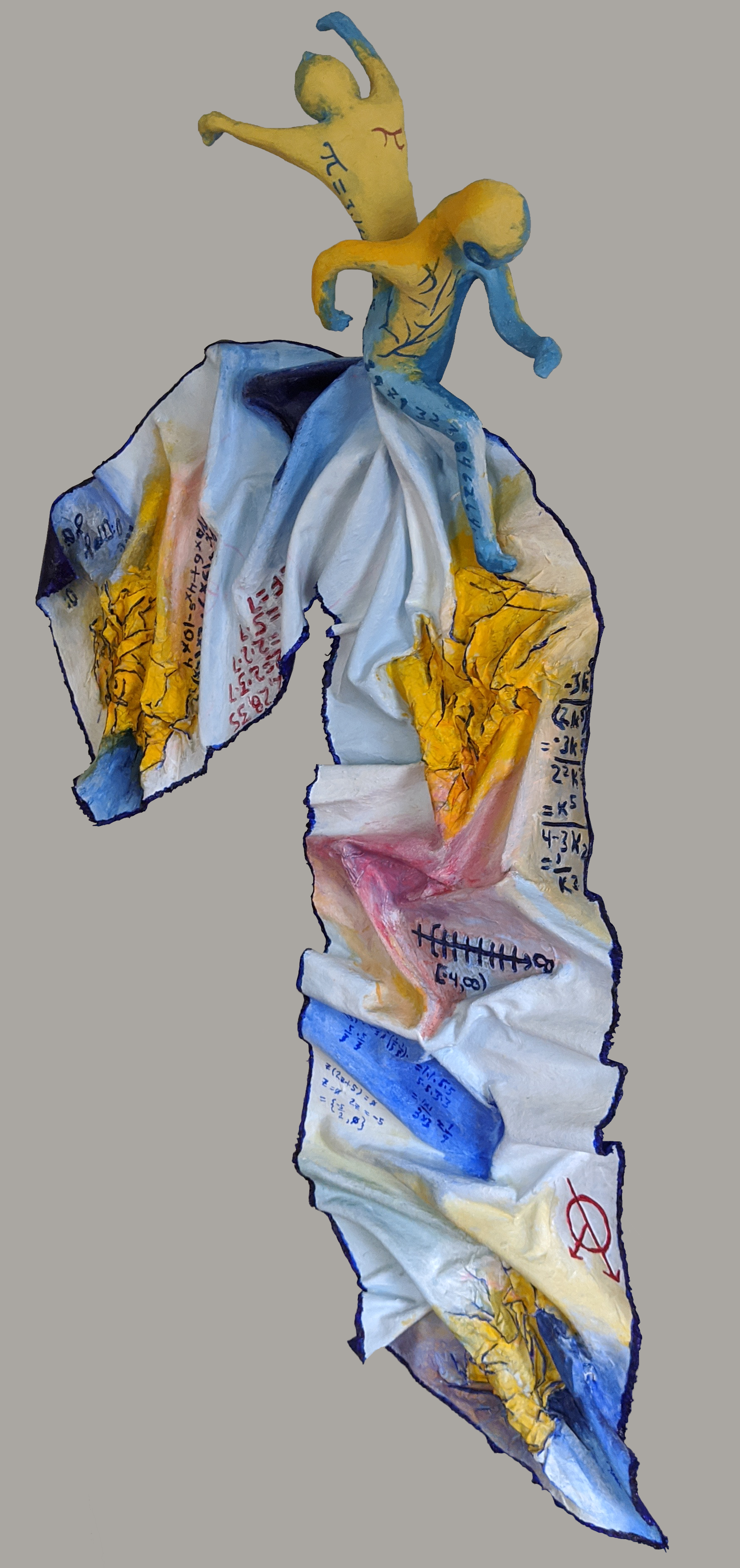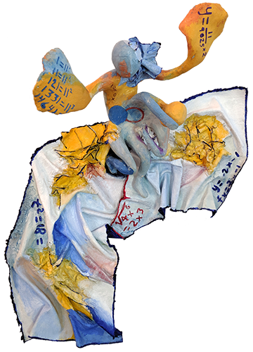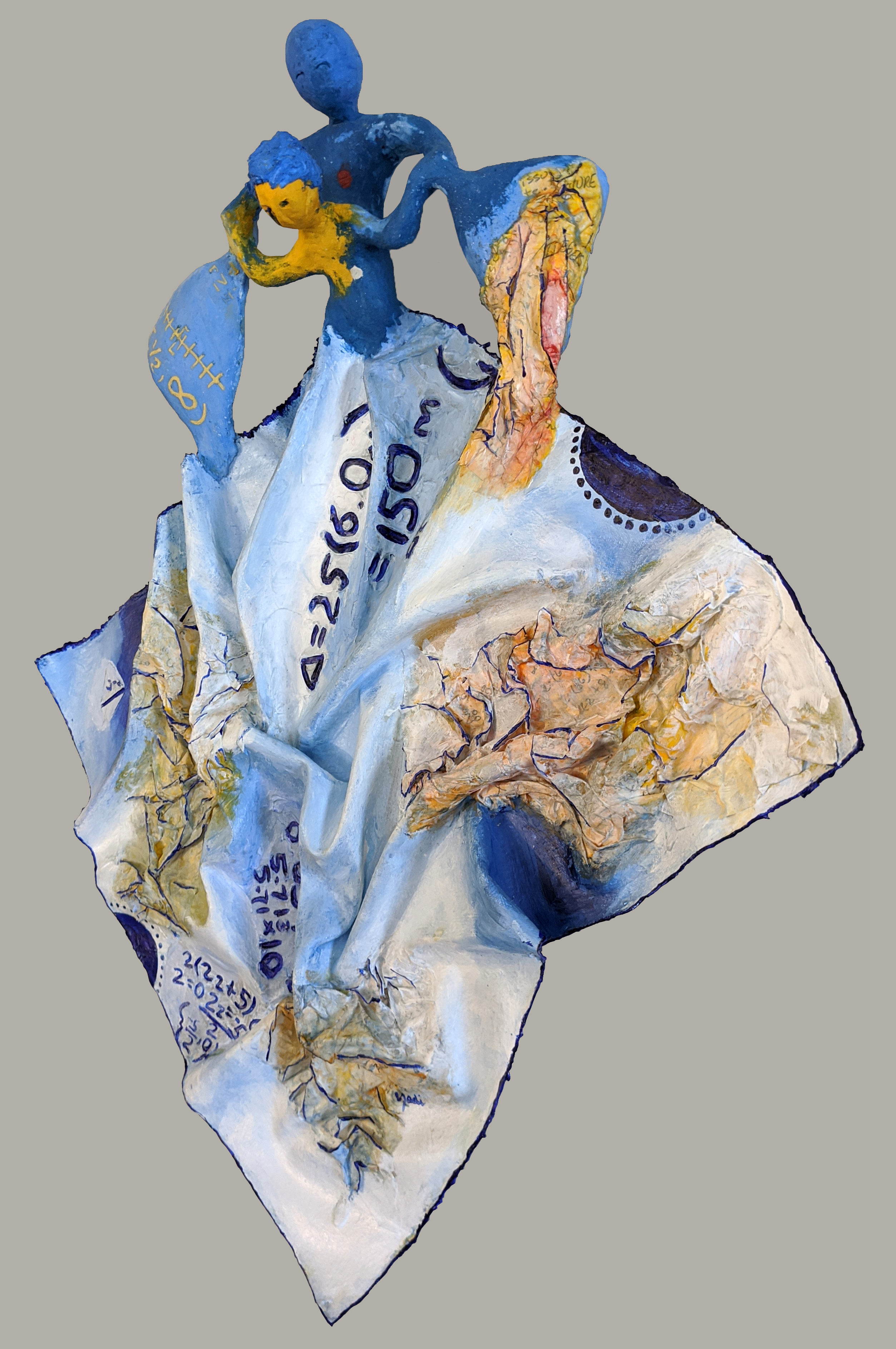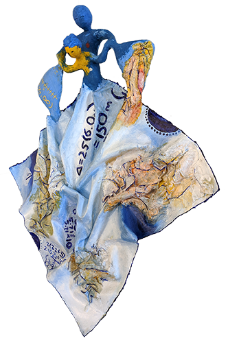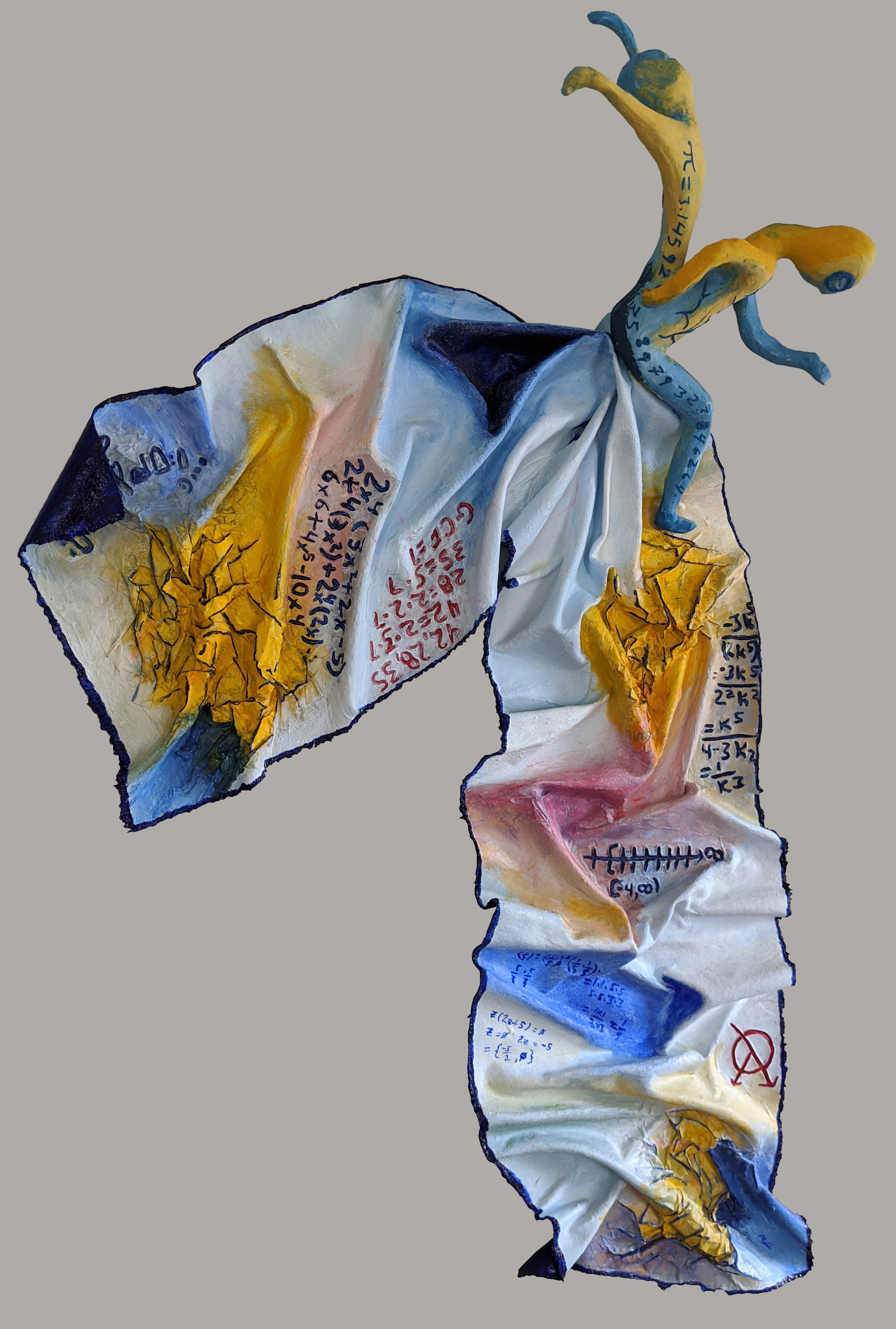 These wall mounted sculptures began with a dream and were never meant to be. Dreams are often the beginning of my work, in which reoccurring dreams will continue to reappear until the work has been started. The duality of the creative and analytical is more clearly defined by the primitive images draped with canvas.
