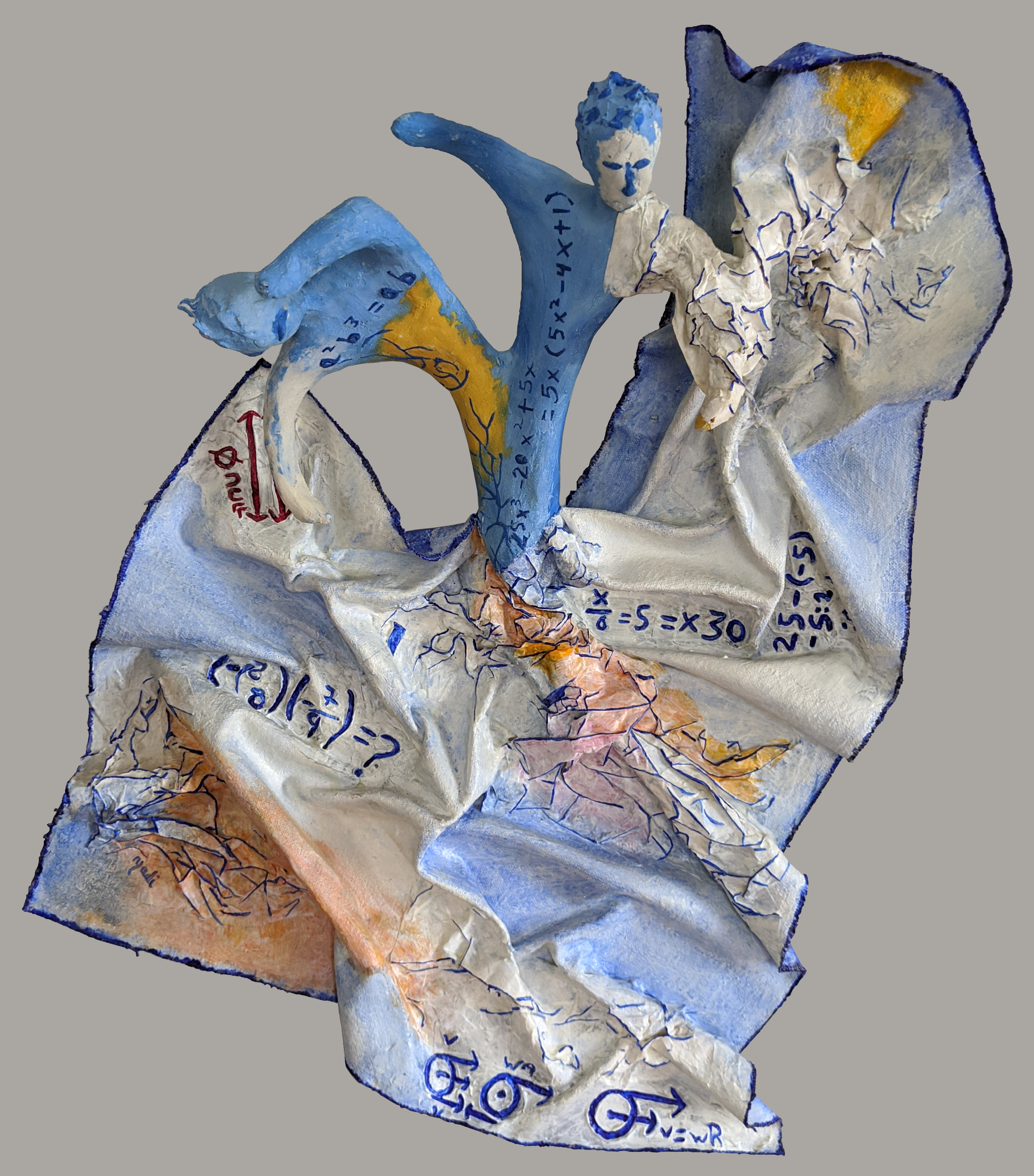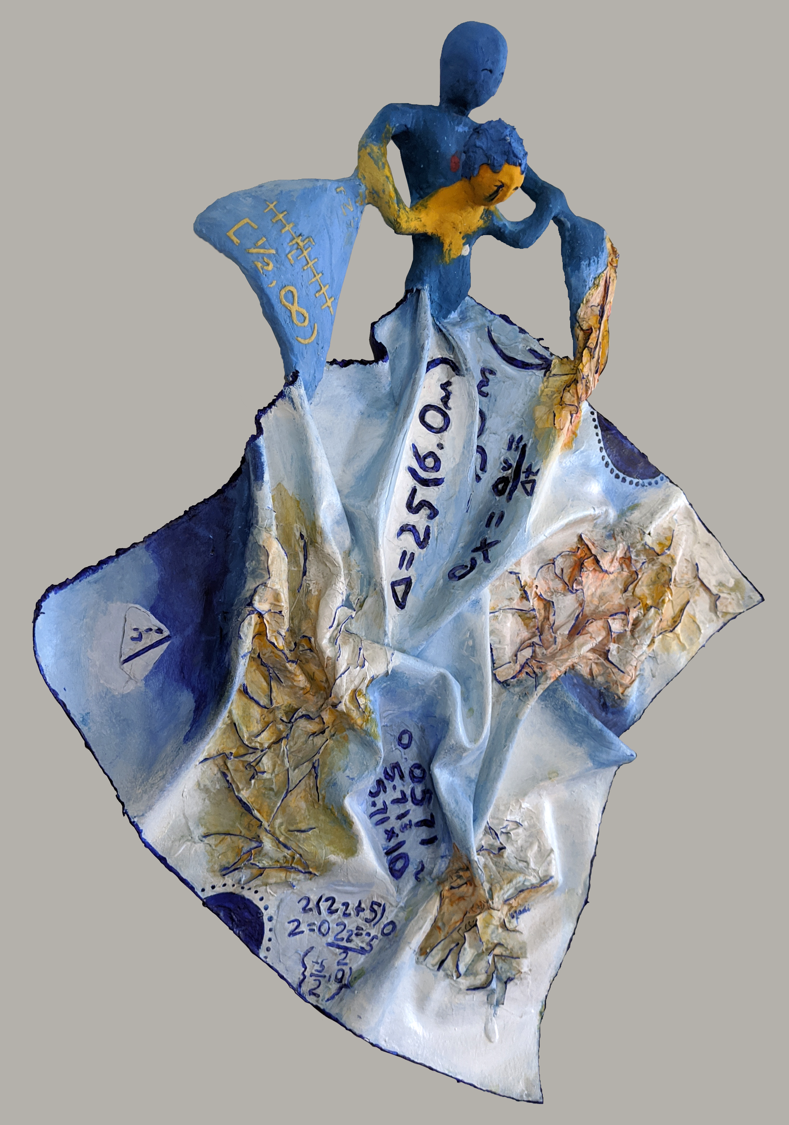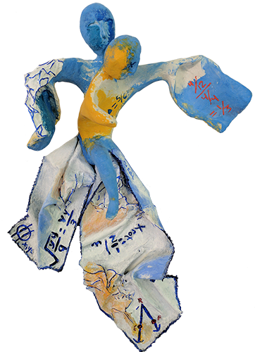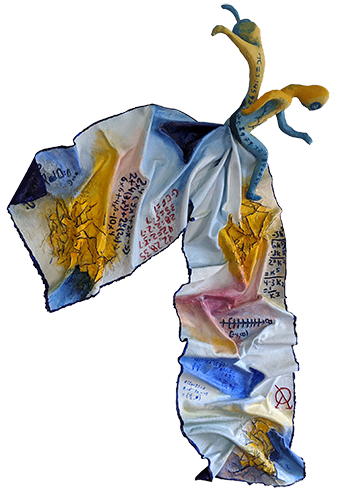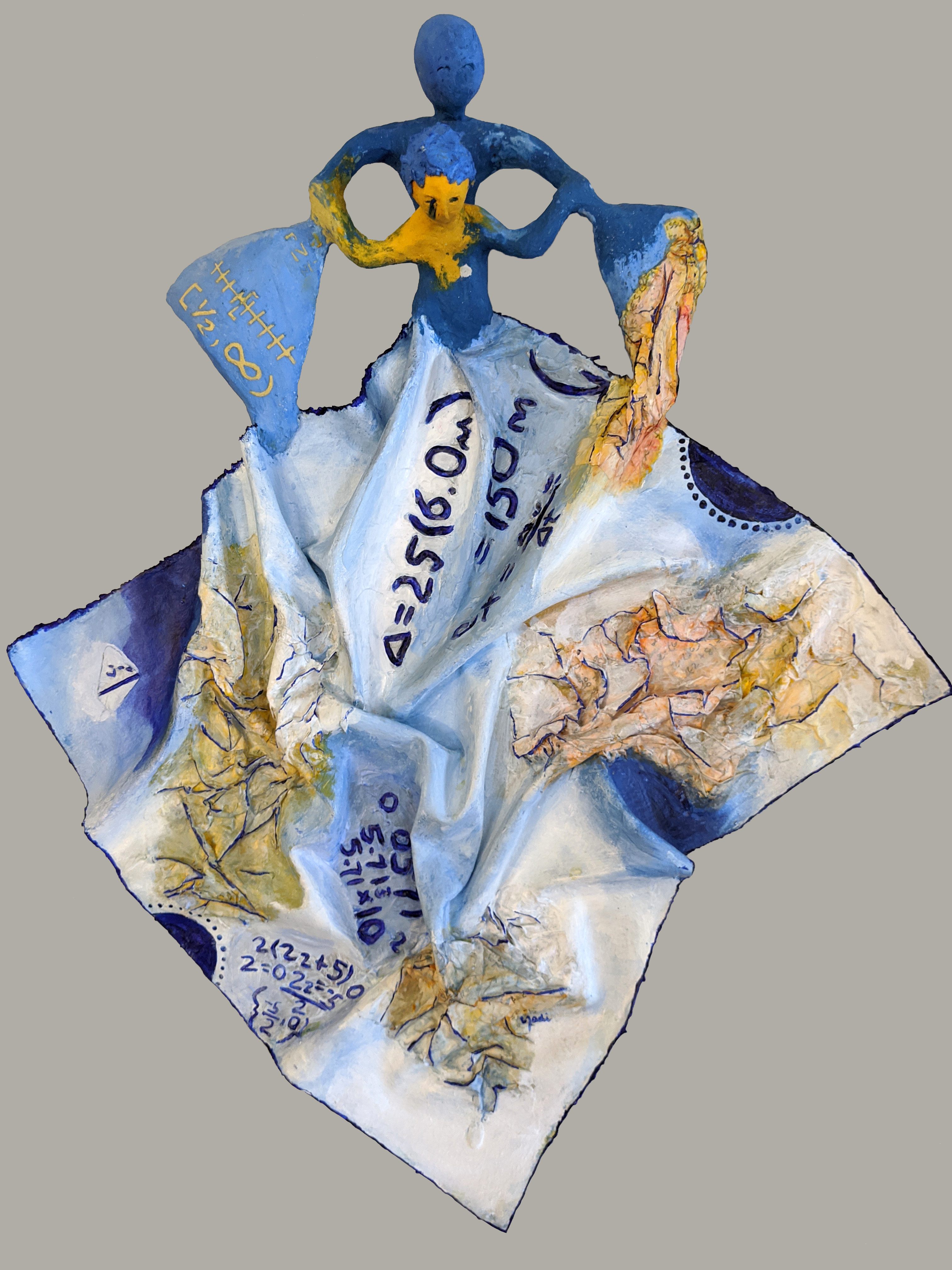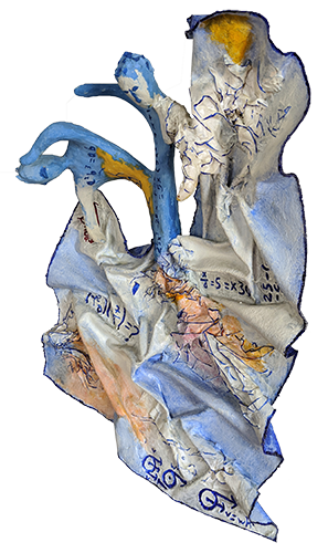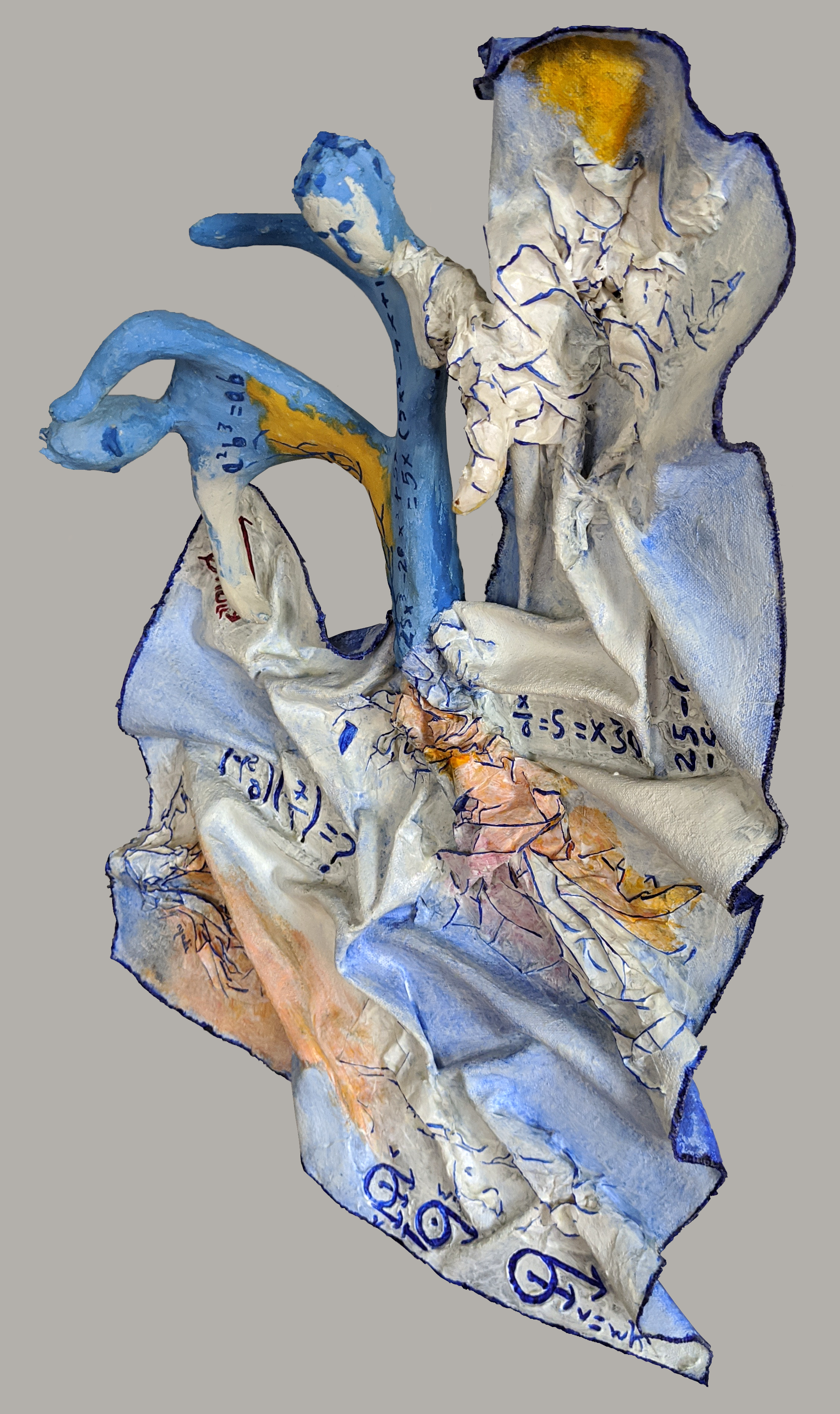 These wall mounted sculptures began with a dream and were never meant to be. Dreams are often the beginning of my work, in which reoccurring dreams will continue to reappear until the work has been started. The duality of the creative and analytical is more clearly defined by the primitive images draped with canvas.